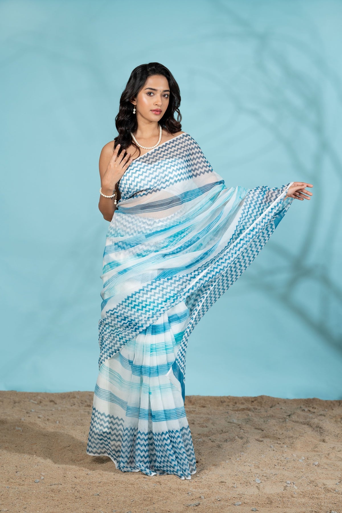 Śukti  takes its name from the seashell, simple yet full of wonder. This Rajasthani Kota saree with brush strokes carries a soft, natural charm. Light and airy, this lightweight cotton saree feels easy to wear and effortlessly graceful.