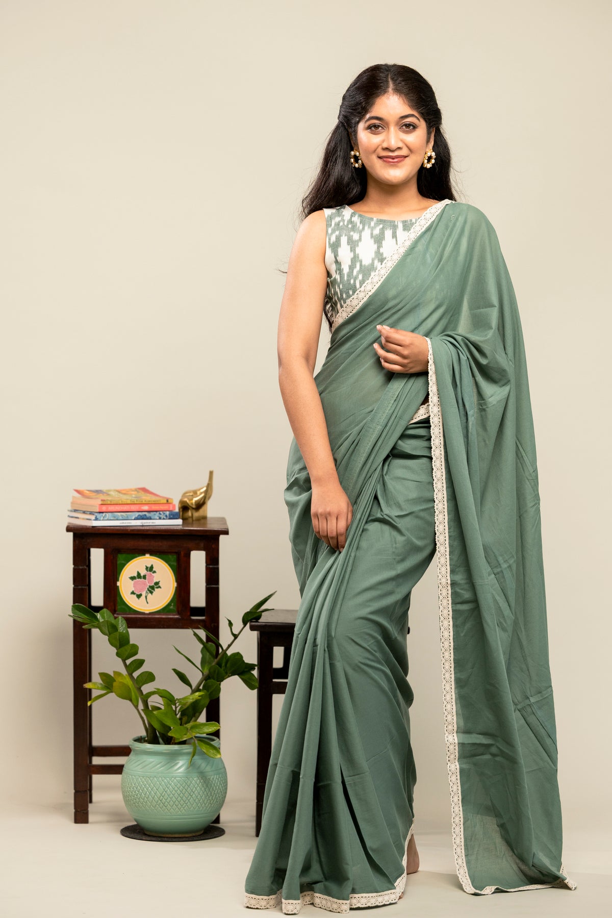 This handloom cotton saree online offers a weightless drape and soft touch. The pure cotton weave breathes naturally. It maintains its simple, elegant silhouette from morning to night.