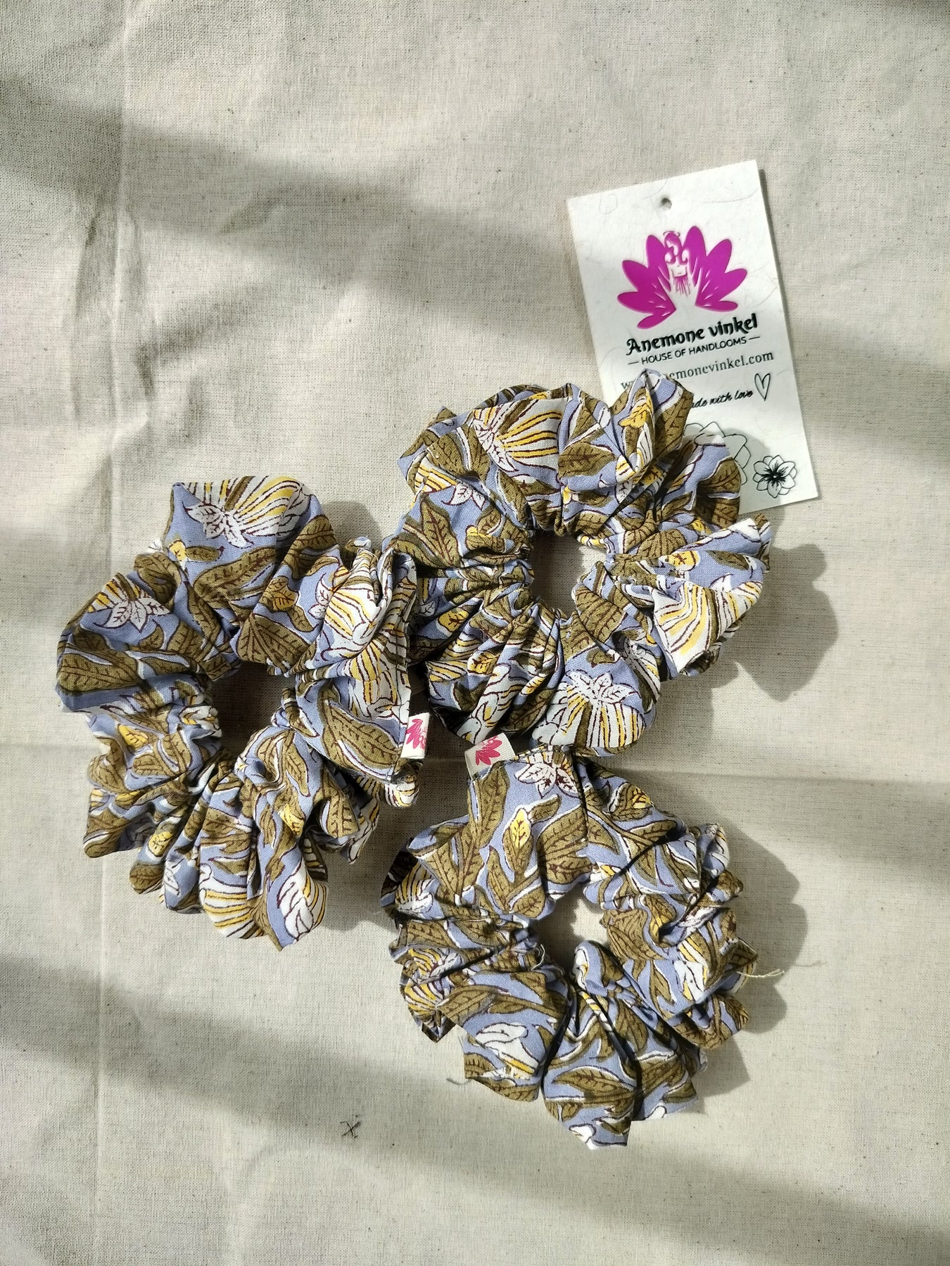 Elevate your style with Anemone Vinkel's cotton scrunchies. Made from 100% pure cotton, they offer a gentle, secure hold while minimizing breakage and frizz. Available in vibrant, traditional patterns, these scrunchies are perfect for any occasion. Enjoy comfort and fashion in one accessory.