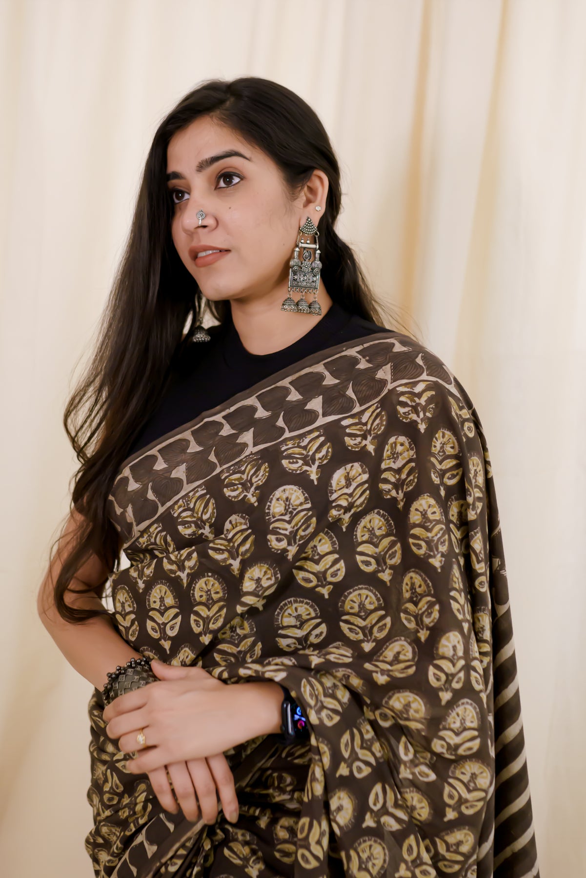 Jaipur fabrics are known for their unique and captivating hand block prints. These sarees are hand-woven and dyed in the traditional method. Cotton sarees are the best to showcase these hand-block prints. Jaipur Cotton sarees at Anemone vinkel are known for their soft, light and comfortable nature with flawless prints. Bagru prints are Rajasthan's traditional prints that you can find in Jaipur Cottons from Anemone vinkel. We handpicked the collection with the perfect blend of traditional motifs with contemporary prints. Shop your favourite Jaipur Cotton saree & stay gorgeous.